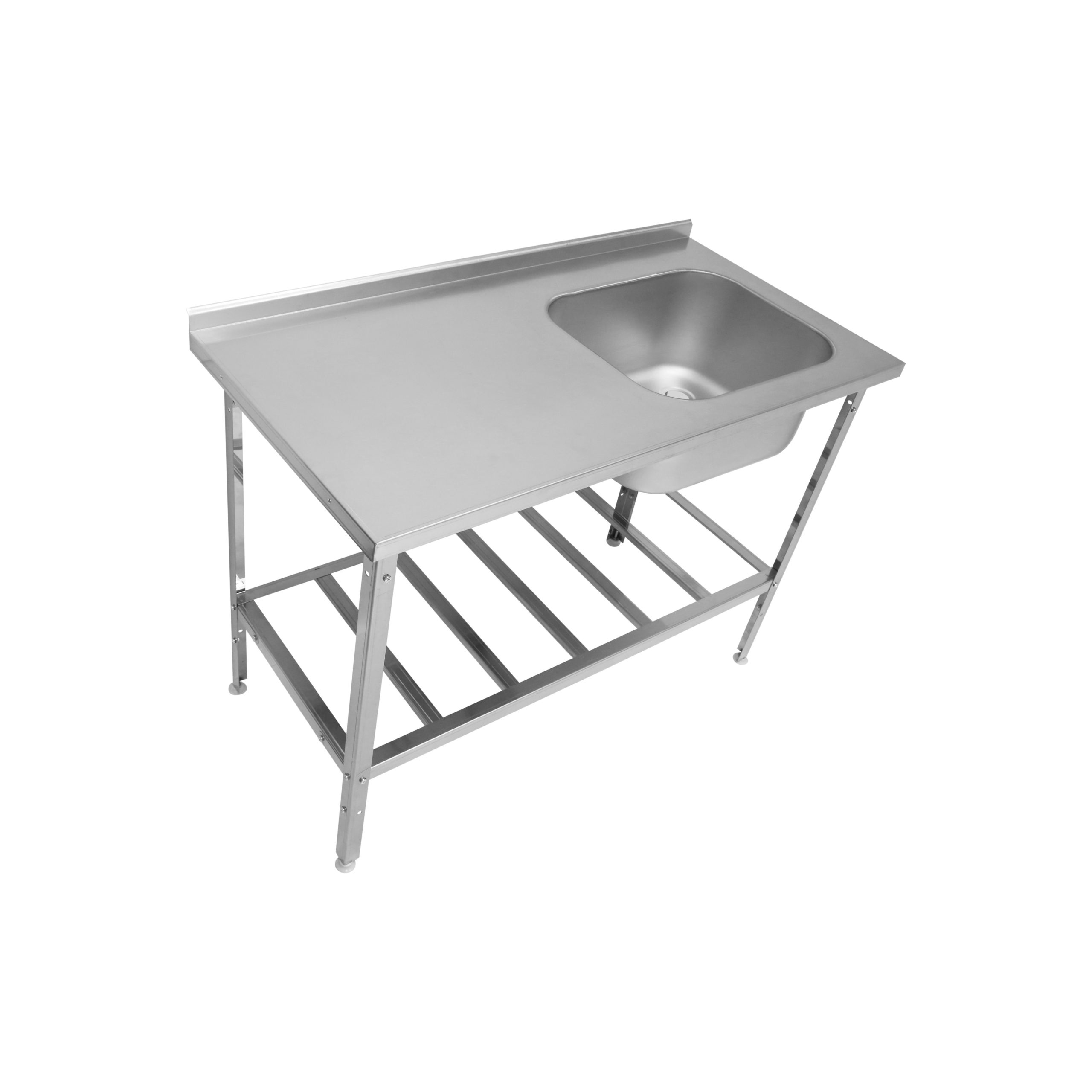 Ванна моечная цельнотянутая, совмещенная с рабочей поверхностью с левой стороны, с бортом и полкой под смеситель (без отверстия под смеситель). Ёмкость ванны и рабочая поверхность выполнены из нержавеющей стали марки AISI 304. Рабочая поверхность, расположенная слева, является прямым продолжением ванны. Каркас ванны может быть выполнен из крашенной/нержавеющей стали. Стойки каркаса — уголок 35х35. Опорные ножки регулируются по высоте.