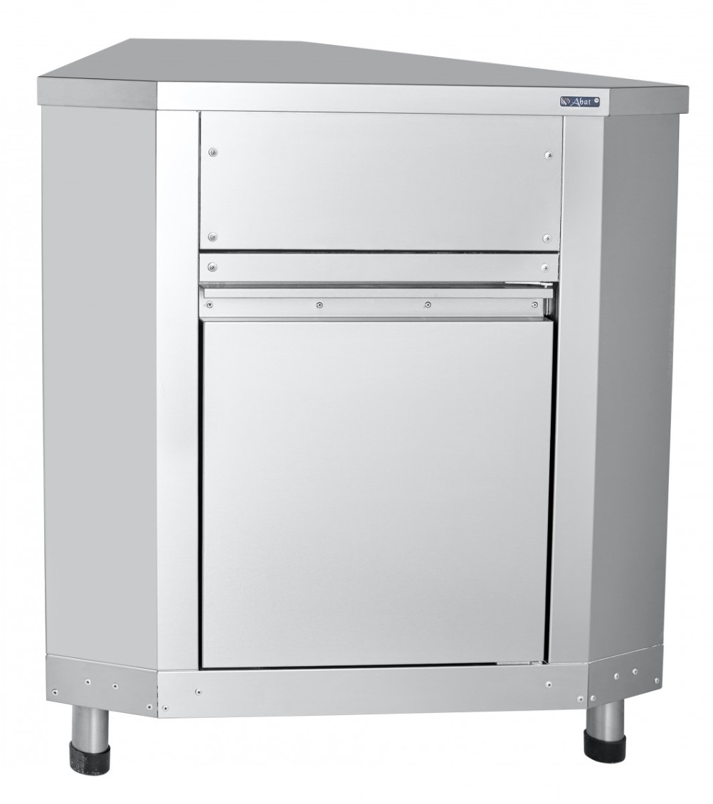 Внизу нейтральный шкаф для хранения кухонного инвентаря. Без направляющей. Регулируемые по высоте ножки. Угол поворота: 45°. |