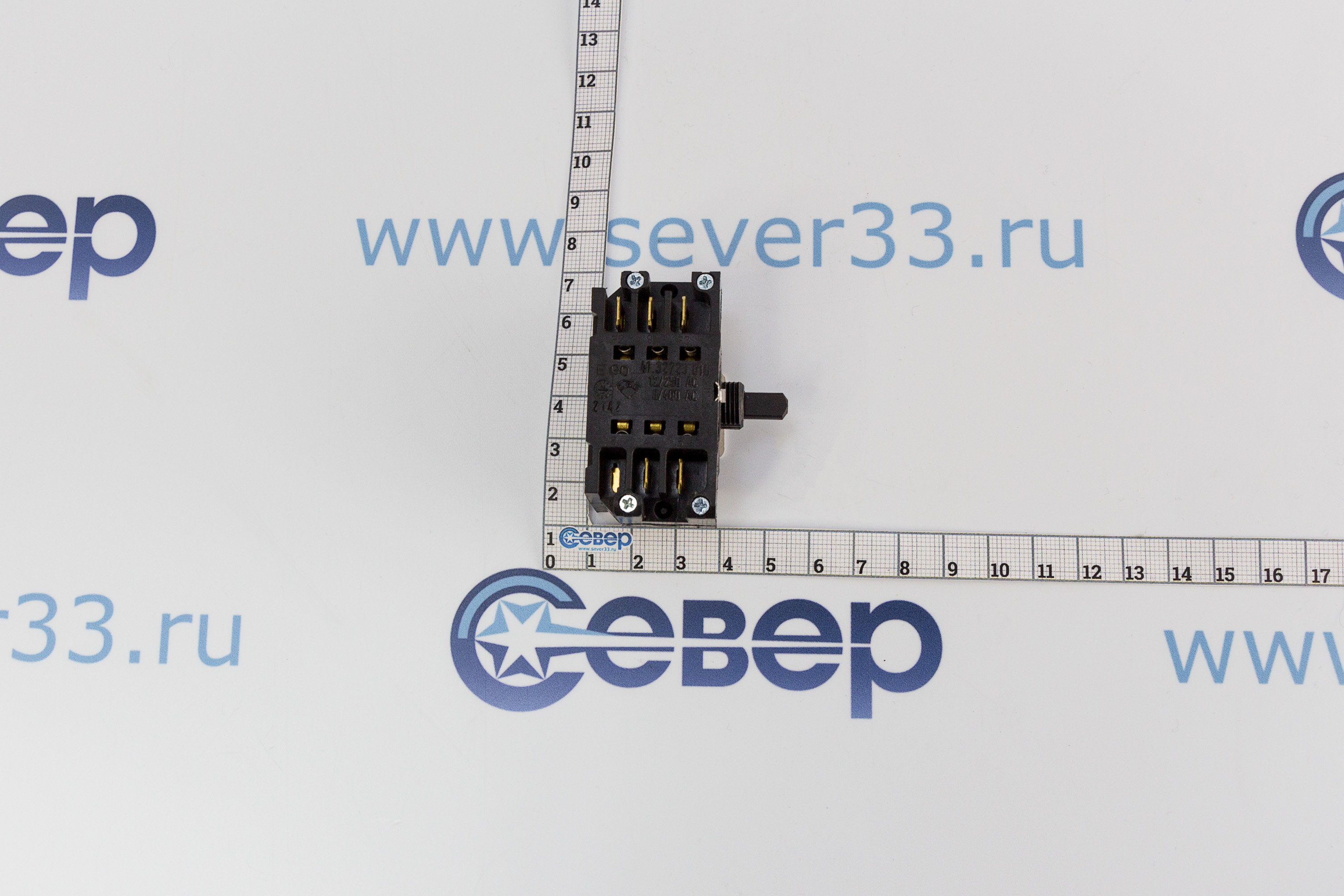 7 позиций переключения: (6 рабочих и 1 нулевая). Имеет по 5 клемм сверху и снизу. Максимальная сила тока: 12A/250V и 8A/400V. |