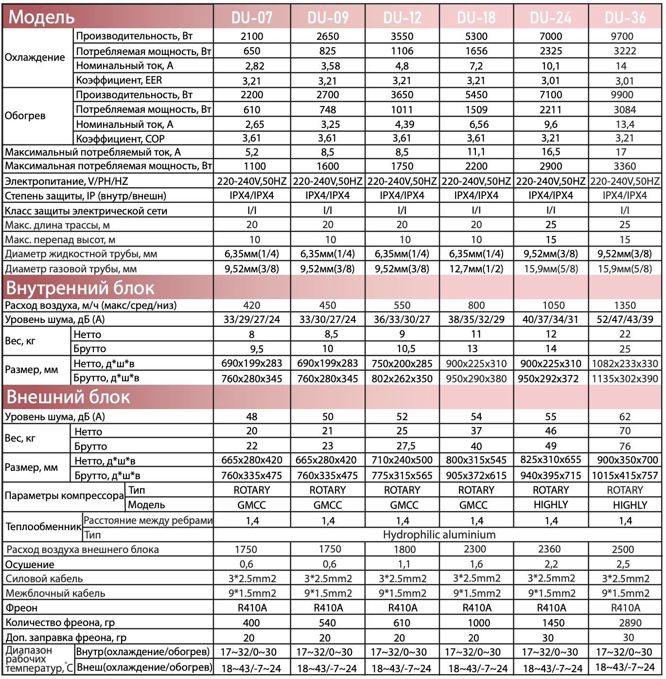 Вес внутренний блок, кг