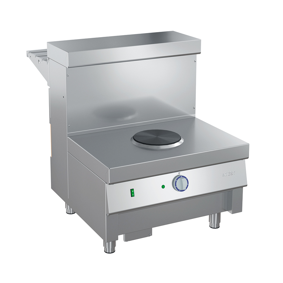 Конструкция сборная, бескаркасная. Высота столешницы с конфоркой – 510 мм от уровня пола. Столешница выполнена из нержавеющей стали AISI430. На столешнице расположена конфорка диаметром 220 мм – 1шт. Мощность конфорки регулируется 6-позиционным пакетным переключателем. Ножки модуля выполнены из нержавеющей стали, имеют пластиковую опорную часть и регулируют высоту модуля в пределах ±20 мм. В комплект модуля входтт направляющая для подносов размером 700х315 мм, выполненная из нержавеющей стали AISI430. Направляющая представляет собой сплошную поверхность с выпуклыми формовками для облегчения скольжения подносов. Направляющая мармита может соединяться с направляющими соседних модулей, формируя сплошную ровную поверхность. Вдоль всей фасадной части под столешницей расположена сменная декоративная панель размером 700х190 мм. Мармит может отдельно комплектоваться 1-но, 2-х или 3-х ярусной полкой. Модуль может дополнительно оснащаться светильником под направляющей. |