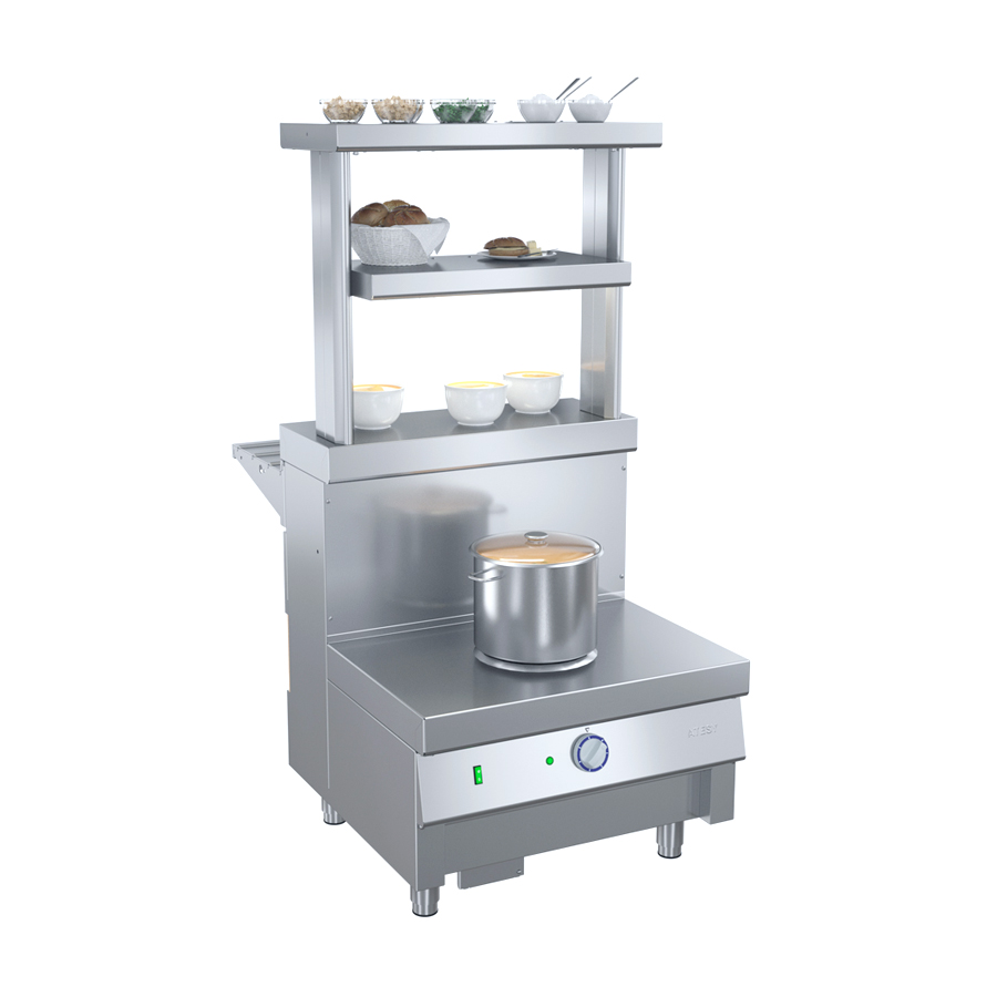 Имеется возможность комплектования 1-но, 2-х или 3-х ярусной полкой для размещения тарелок с блюдами.
