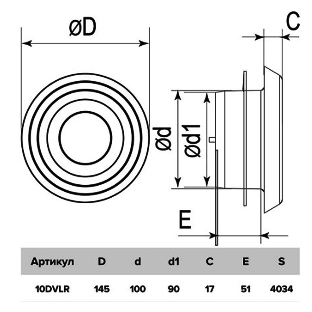 Для приточно-вытяжных систем. Регулировка потока воздуха. Монтаж с помощью саморезов; клея; стопорного кольца; фланца. Размещение - настенно-потолочное. Диаметр установочный - 100 мм, диаметр внешний - 100 мм. |