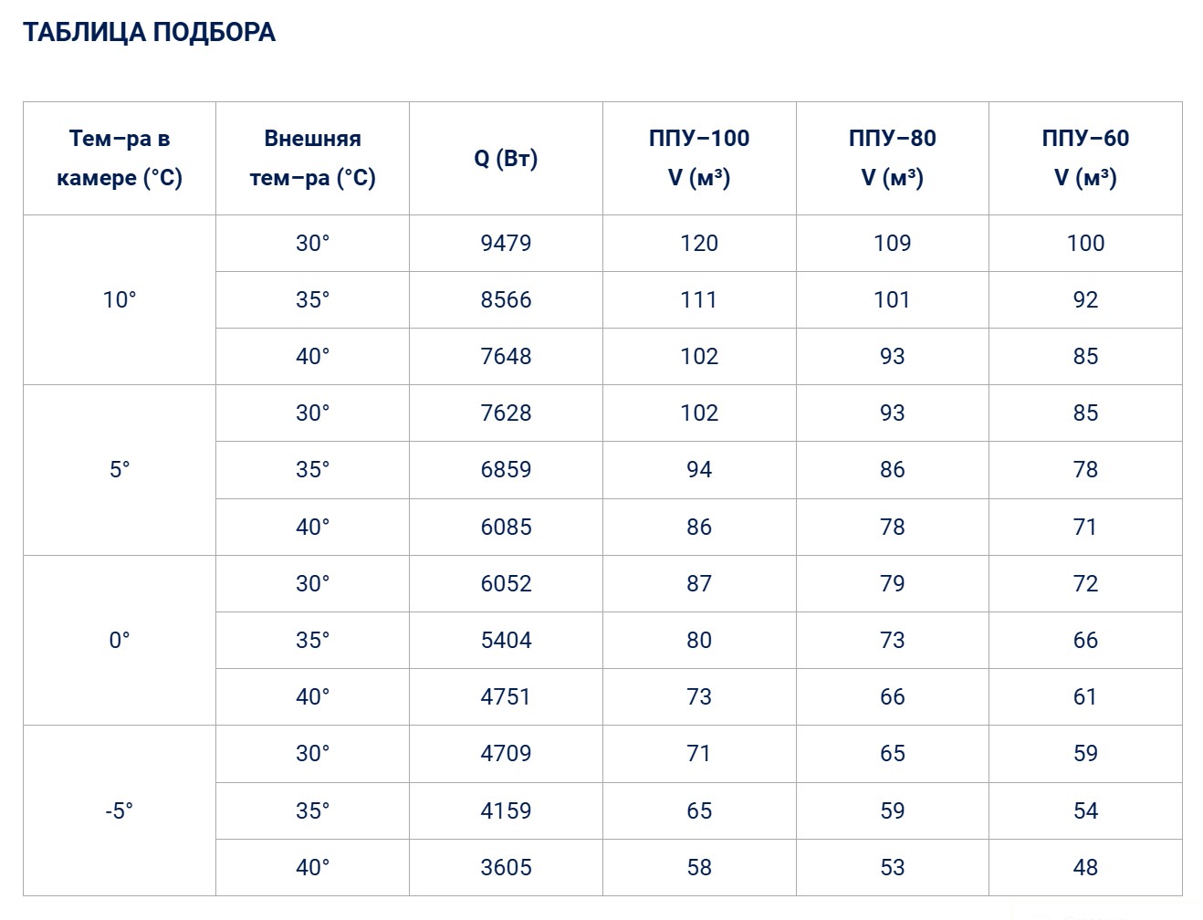 Охлаждаемый объем V, м³