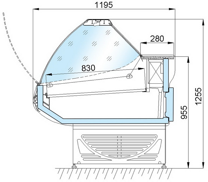 Площадь выкладки: 1,02 м². Глубина выкладки: 830 мм. Полезный охлаждаемый объем: 0,24 м³. Нагрузка на противни: 42 кг. Мощность во время оттайки: 610 Вт. Мощность освещения: 70 Вт. Сборка в линию: возможна. Длина без боковин: 1234 мм. Хладообеспечение: встроенный холод. Подтоварник: есть. |