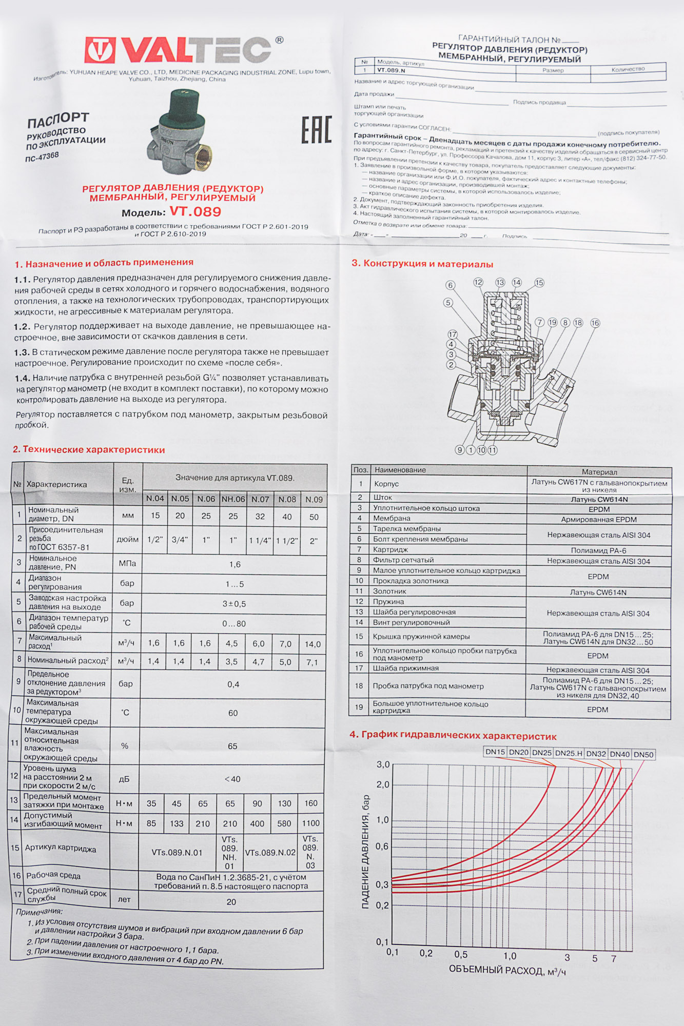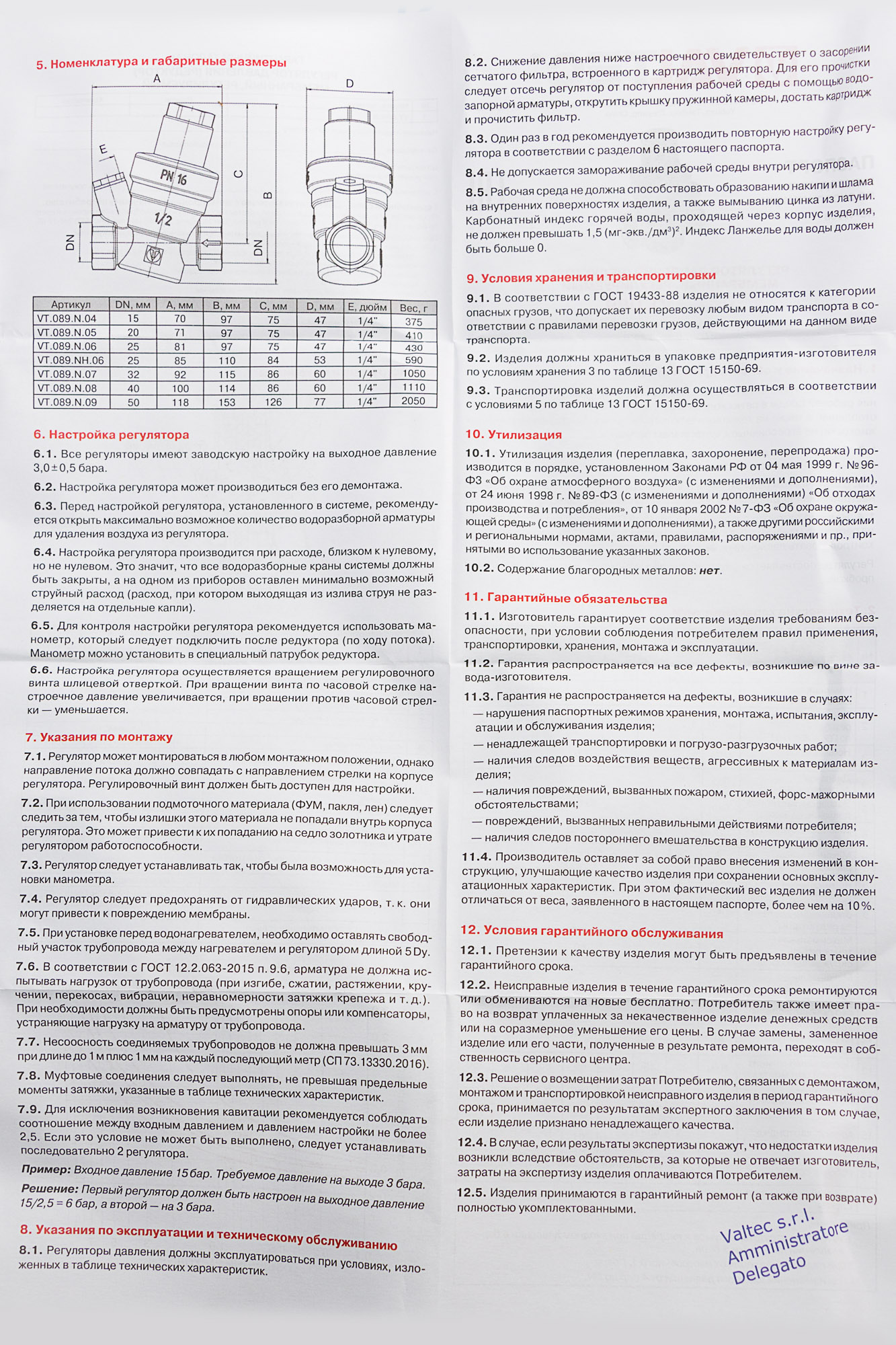 Редуктор поддерживает на выходе давление, не превышающее настроечное, вне зависимости от скачков давления в сети. В статическом режиме давление после регулятора также не превышает настроечное. Регулирование происходит по схеме "после себя".