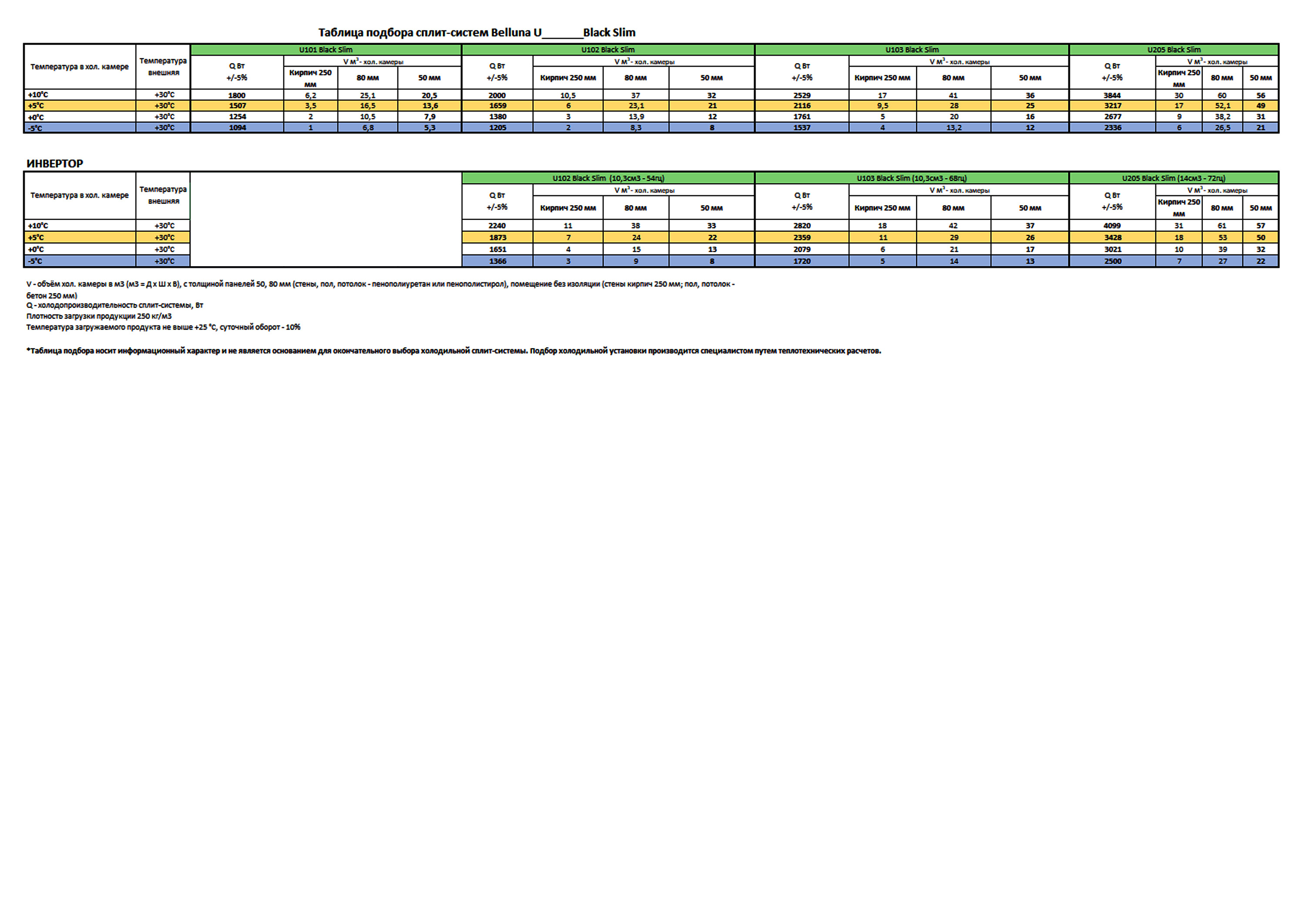 Объем холодильной камеры: от 27 м3 (при -5°С) до 53 м3 (при +5°С). Требования к холодильной камере: толщина пенополиуретановых панелей (стены, пол, потолок) не менее 80 мм. Зимний комплект для работы наруж.блока от –30 до +45 °C на улице: да. Диаметр труб жидкость: 1/4 (6,35 мм) дюйм. Диаметр труб газ при стандартной длине трассы: 3/8 (9,52 мм) дюйм. Обращаем внимание, цена на сплит-системы Belluna указана без НДС! |